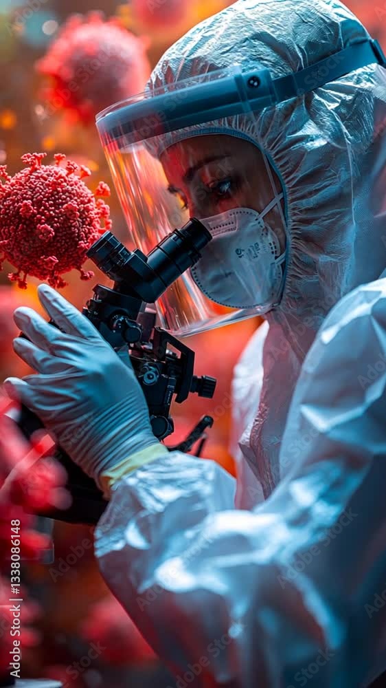 3D-pandemi för coronavirus på röd molnig bakgrund för storm