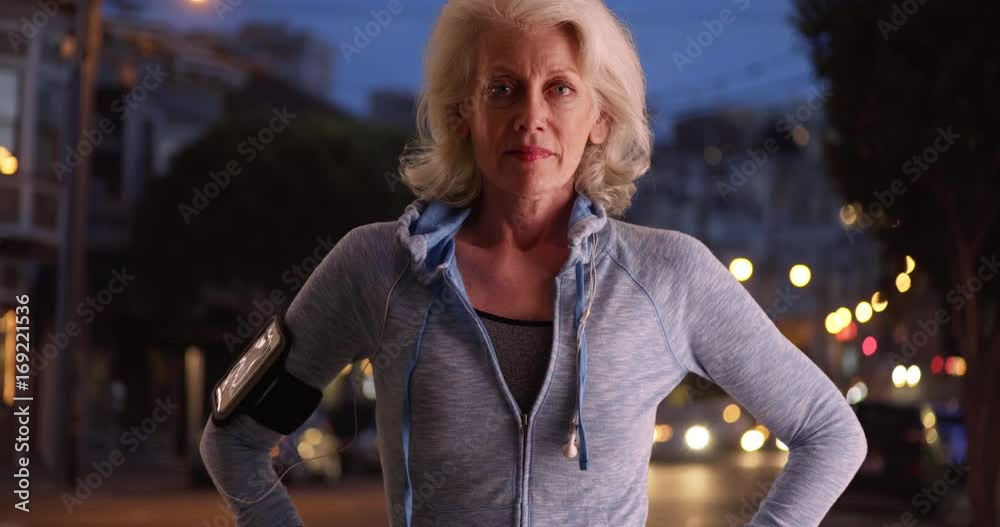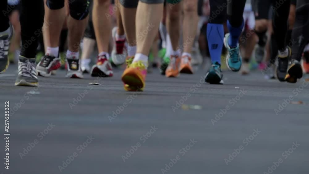 Långsam rörelse - Ung asiatisk kvinna som går på trottoaren på morgonen.