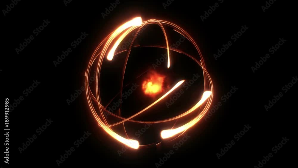 Atom 3d-modell, protoner och neutroner i atomkärnan och kretsande elektroner, 4k