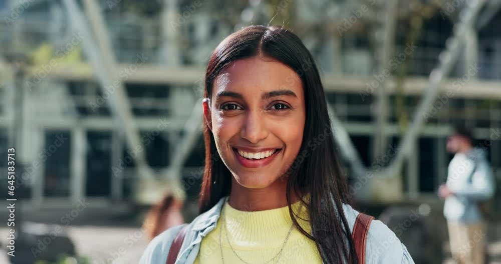 Ung kvinna läser en bok och tittar på kameran