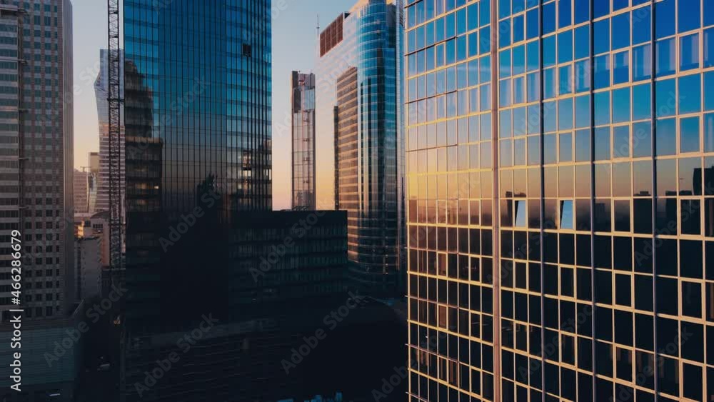 Lång skott av skycrapers i Los Angeles med smog i förgrunden i 4K