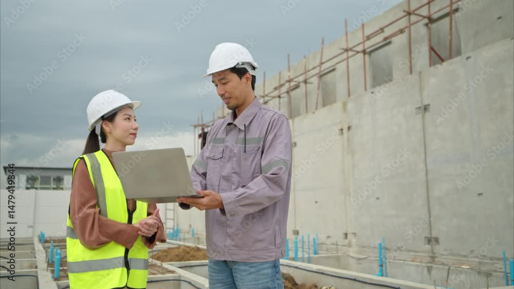 Byggnadsarbetare pratar 4K stock video