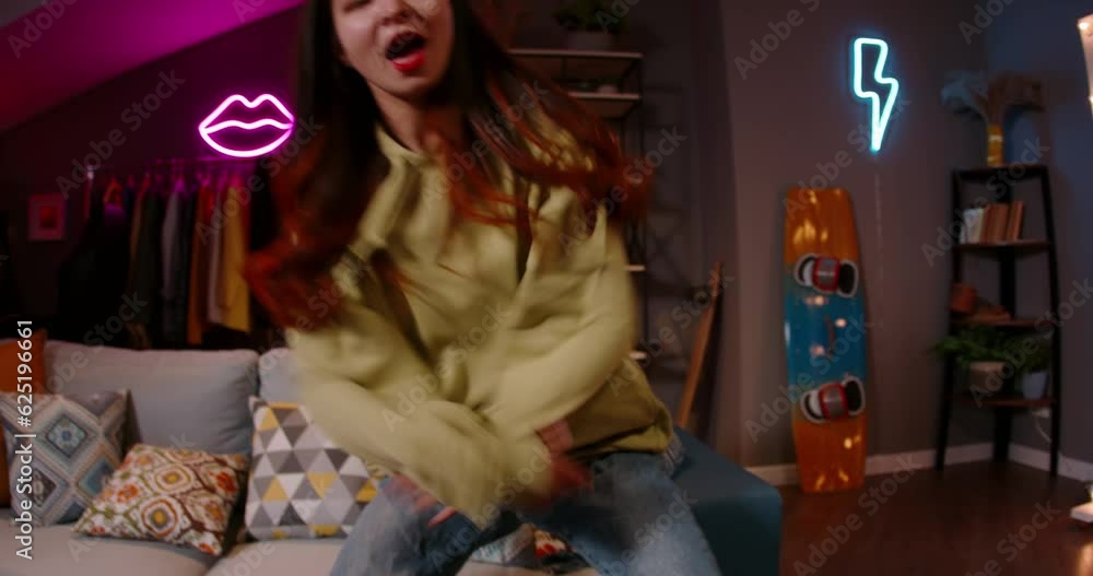 Ung kvinna som spelar actionspel på VR-headsetet.