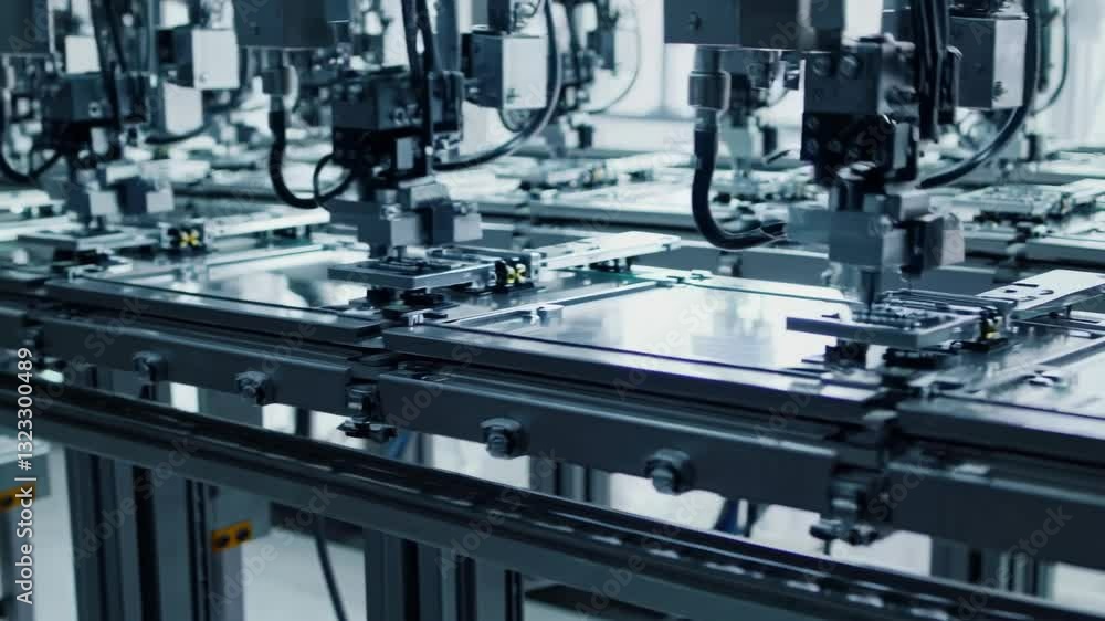 Många llitle metallbollar flyttar från övre till nedre del av scenen i 4K
