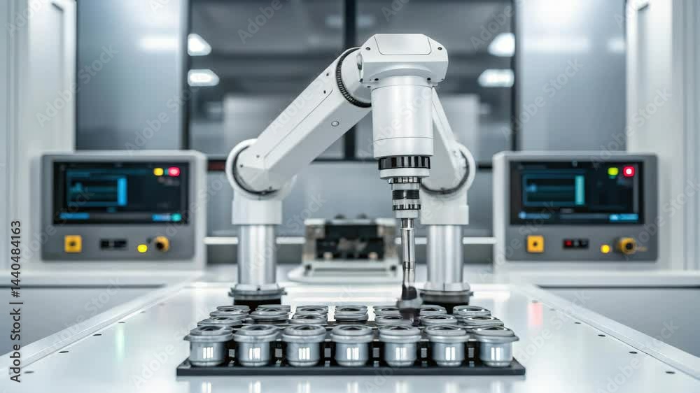 Fyra stålfatbollar som rör sig på vit yta i olika vägar i 4K