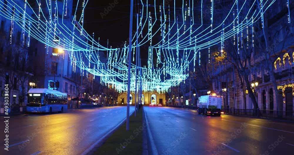 Mörk vintermall med några vackra snöfallar som faller i 4K