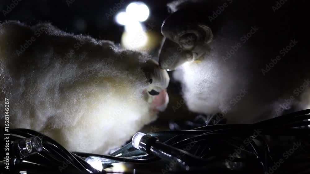 Vinterscenen med få snöpartiklar som faller långsamt i mörker i 4K