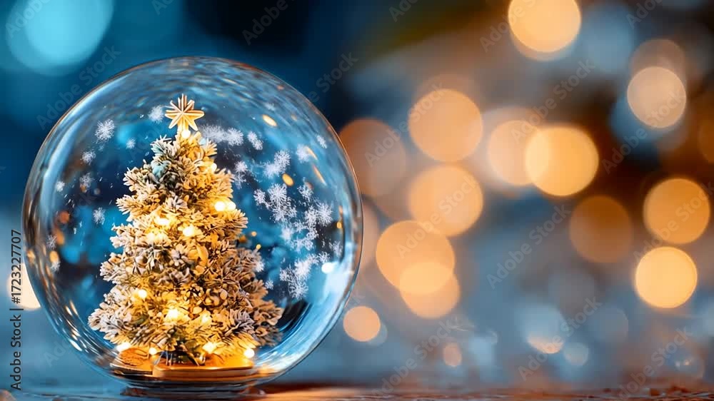 Mörk vintermall med snö som faller från övre vänster till nedre högra hörnet i 4K