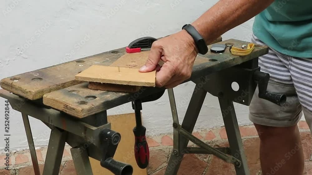 Byggnadsarbetare slå en spik med hammare 4K stock video
