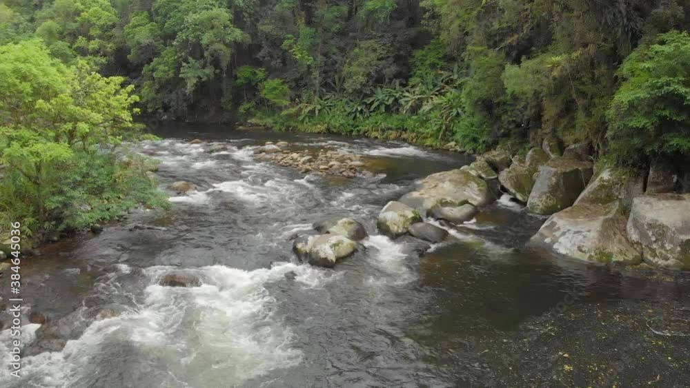 Vattenström som rinner försiktigt mitt i skogen