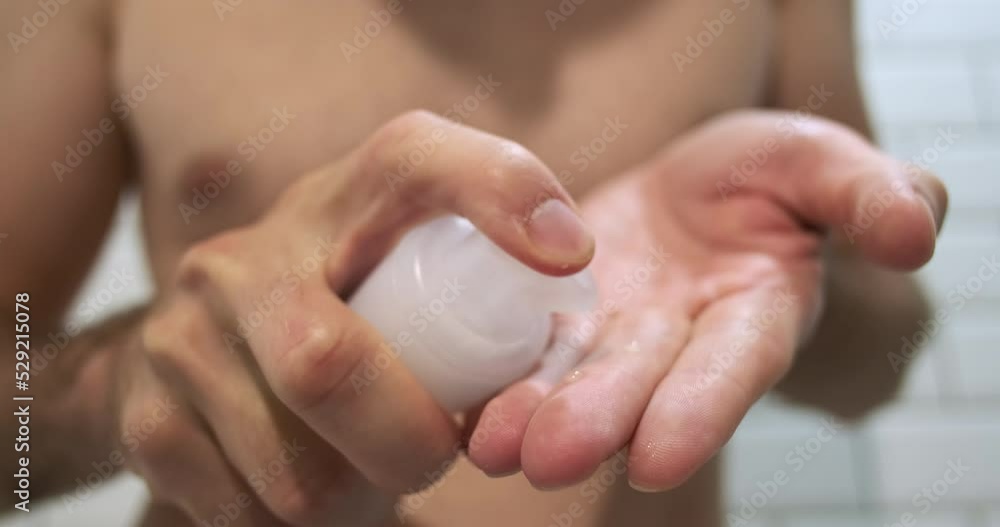Mannen håller en havssten i händerna
