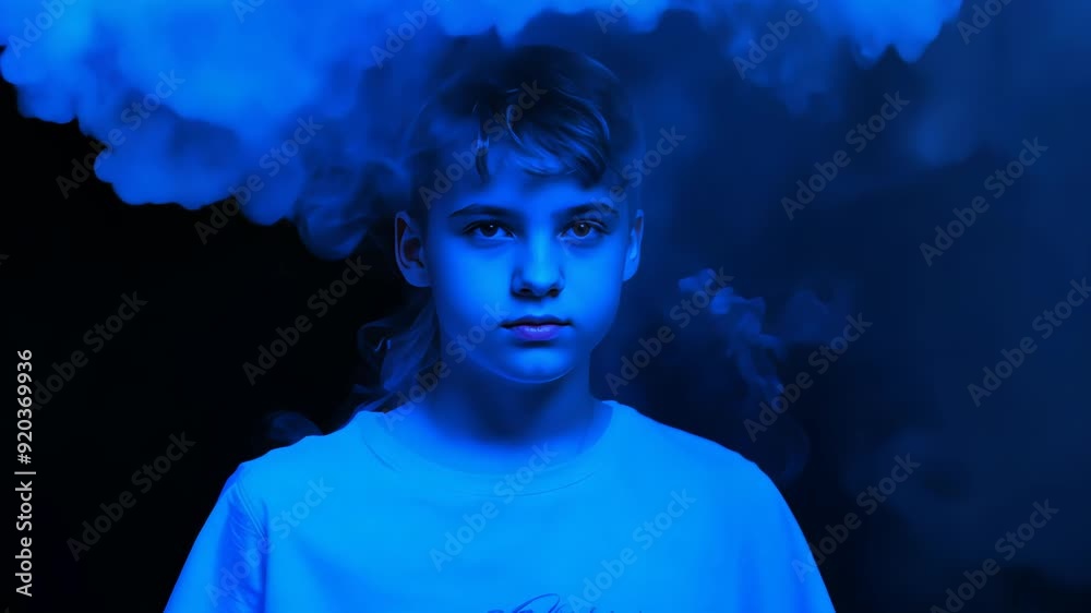 Blå cirkulär partikel som rör sig i svart rymdteknologibakgrund