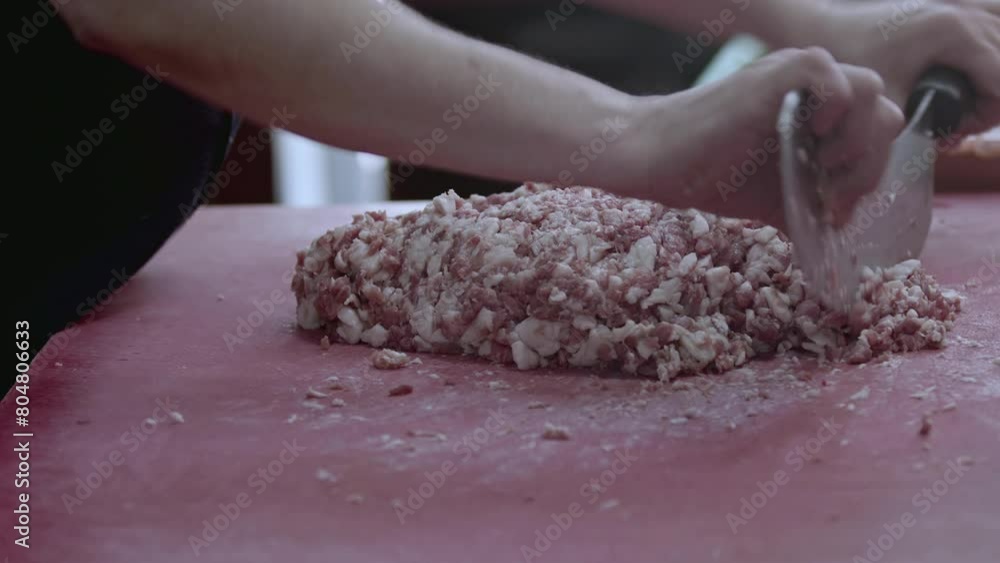 Tusentals snöpartiklar faller långsamt med snöig skog i bakgrunden i 4K