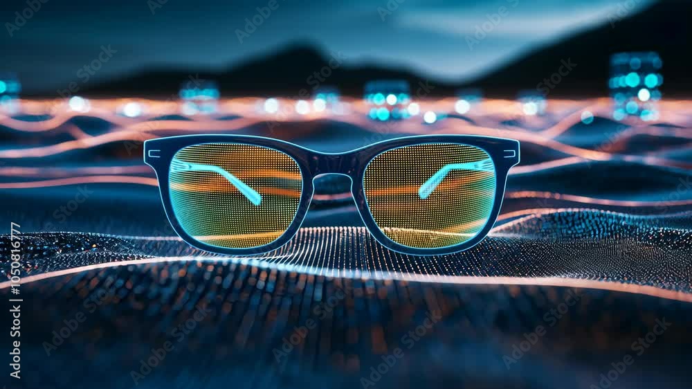 Digitala linjer som rör sig uppåt i blå bakgrund
