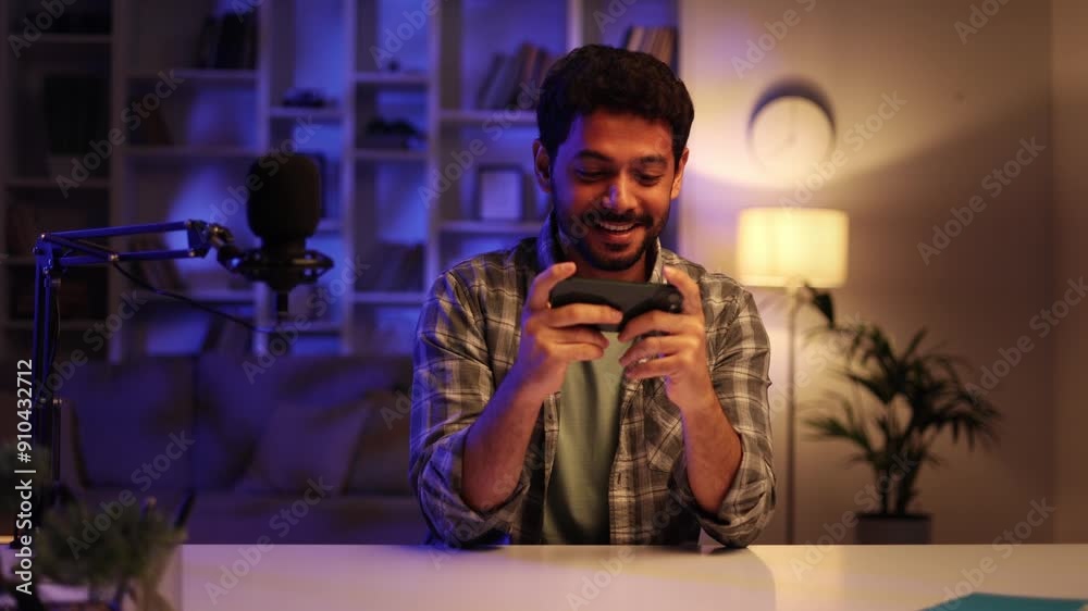 Två pojkar som använder en smartphone och hörlurar och spelar mobilspel online.